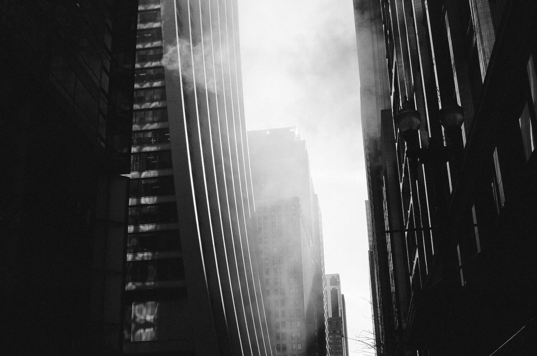 I was riding my bike heading west down Madison Avenue just off of Michigan Avenue. It was late afternoon and west light was peaking through the buildings with fog. The four photos were shot within minutes of each other.
